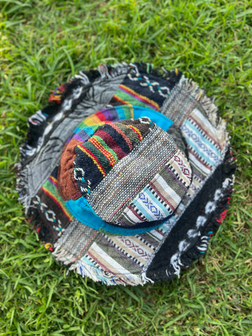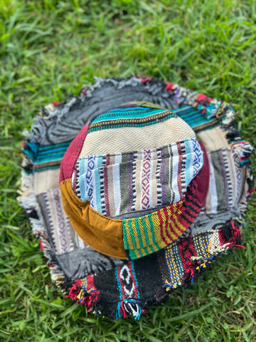 This patchwork boho bucket hat pairs creative style with everyday wear. Patchwork panels in assorted colors create a unique look for each piece. The brim is shapeable and holds its form after you style it. Frayed edges add a relaxed finish that fits a laid-back wardrobe. Each hat is handmade in Nepal with natural stitching variations. That is why no two will look the same. The hat is lightweight and breathable, so it works for travel and daily use. It adds character to simple outfits and layers easily with your other accessories.